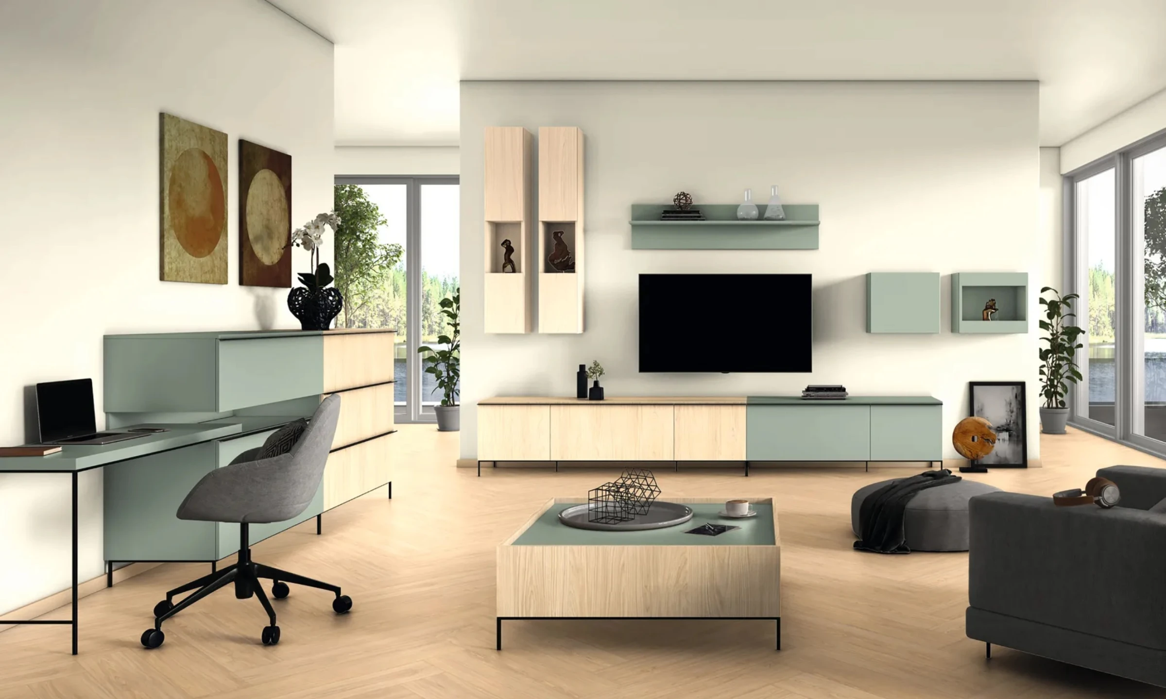 Green is nature and therefore represents sustainability more than any other color. In 'Biophilic Design', rooms are often designed with gradations of many muted green tones, which reflect the diversity of nature when combined with natural materials. The U604 Reed Green is a cooler variant of these greyish greens that can be timeless players in many combinations.
