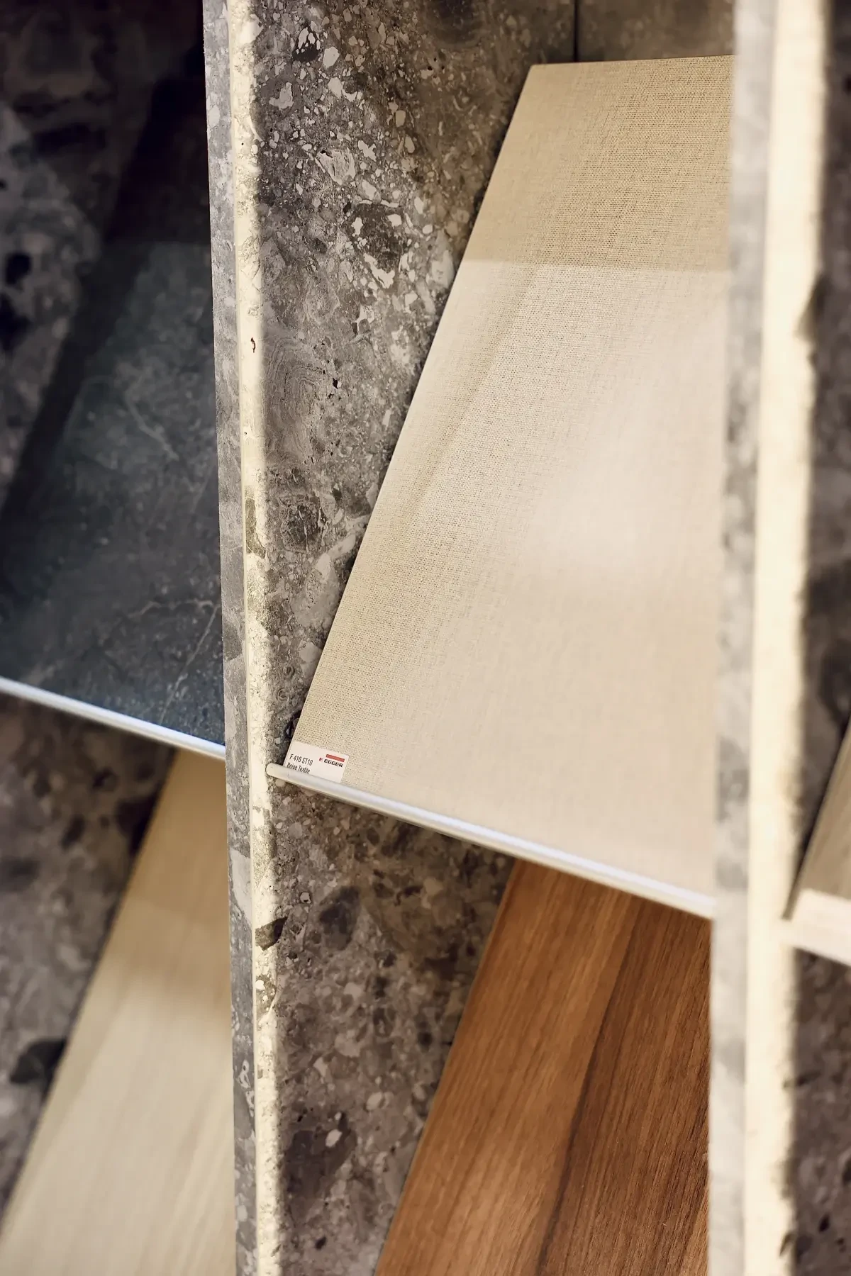 To let the materials lead, and the EGGER Grey Triestino Terrazzo had the depth